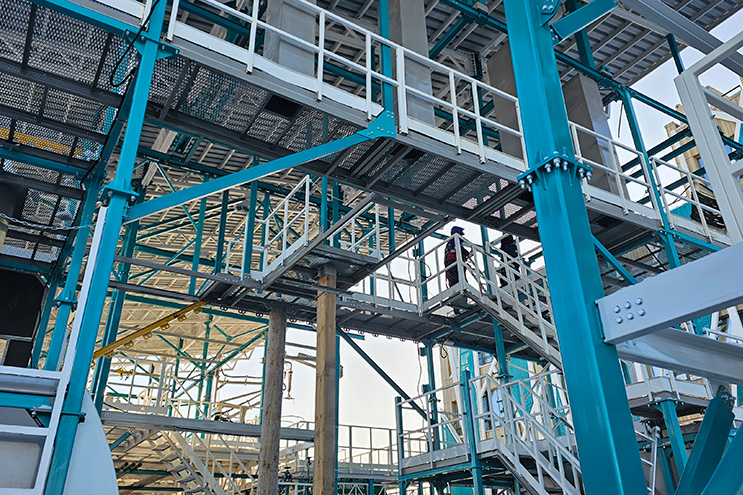 - Система переходных мостиков и площадок различного уровня